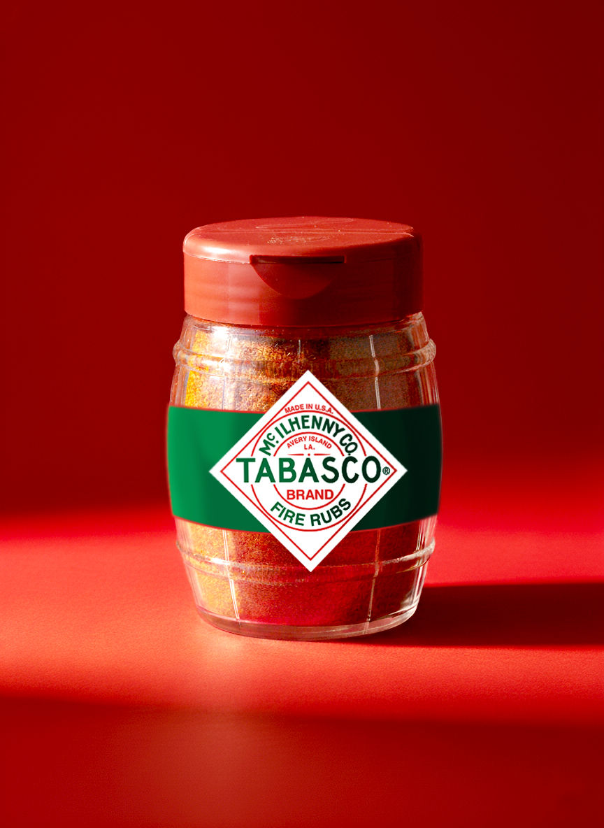 Tabasco Fire Rubs is a dry rub line that builds on the iconic Tabasco brand by transforming the classic pepper-aging barrel into the product’s signature bottle shape. The design keeps the brand’s heritage front and center while giving the rubs a bold, attention-grabbing look. Eye-catching visuals and energetic headlines highlight the heat, flavor, and attitude of the new lineup, positioning Tabasco Fire Rubs as a fresh and exciting extension of the original sauce.